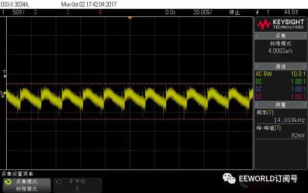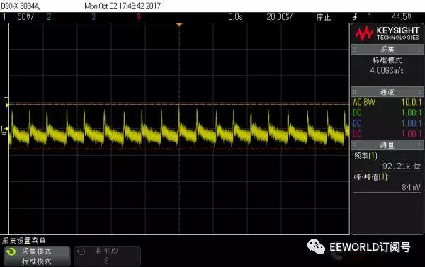 先說(shuō)說(shuō)測(cè)試之前的預(yù)期或者認(rèn)識(shí): Anker 的新款能賣這么貴,毫無(wú)疑問(wèn)紋波比老款控制的好; 蘋果的充電器是目前較常用的,覺(jué)著能賣這么貴,質(zhì)量自然是不錯(cuò)的; 黑色的 Bigben,是在淘寶上買的,說(shuō)是英國(guó)貨,但google到的資料很少,的幾條記錄都是指向國(guó)內(nèi)的淘寶...這個(gè)充電頭質(zhì)量還行,原來(lái)試過(guò)同時(shí)給ipad和充電寶充電,3.4A也是妥妥的!但是有“蜂鳴聲”:手機(jī)充滿了,電源輕載就有蜂鳴聲;聲音微弱,不過(guò)留意聽(tīng)還是可以聽(tīng)到的;甚至,空載的時(shí)候從插座拔下來(lái),把它放到耳邊,能清楚的聽(tīng)到蜂鳴聲過(guò)一段時(shí)間才消失;本以為是個(gè)別現(xiàn)象,后來(lái)又買了一個(gè)還是同樣的問(wèn)題?。?!這個(gè)“蜂鳴聲”本不大,但是一旦聽(tīng)到就沒(méi)法忽略,遂閑置很少再用 堅(jiān)果pro的18W充電器,試過(guò)給堅(jiān)果手機(jī)充電,快充支持的很好,但是帶兩個(gè)充電頭不方便,也很少用 “終結(jié)者”移動(dòng)電源是我親見(jiàn)過(guò)較強(qiáng)大的移動(dòng)電源,QC3.0輸入、輸出,甚至支持一些筆記本適配器直接充電,也可以給ipad 2.4A充電,其他的電壓、電流、溫度、氣壓計(jì)、電子羅盤...應(yīng)有盡有!這個(gè)是我的出差必備 廢話不再多說(shuō),下面開(kāi)始上圖 測(cè)試條件 負(fù)載:1A 測(cè)試時(shí)僅采用1個(gè)4.7Ω功率電阻,2A 測(cè)試時(shí)在前者基礎(chǔ)上并聯(lián) 4Ω 電阻 (考慮導(dǎo)線壓降,實(shí)際電流分別為大于0.9A,和大于1.9A) 示波器:交流耦合,20us/div , 50mV/div, 20M 帶寬限制,1:10衰減探頭 下面正式開(kāi)始測(cè)試 PS. 由于是負(fù)載端直接測(cè)量,測(cè)量結(jié)果可能沒(méi)法和正規(guī)測(cè)試相對(duì)比,在這里僅做個(gè)橫向?qū)Ρ?br /> Anker 新款 充電器 1A 帶載波形