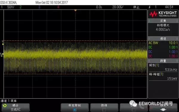 注:移動(dòng)電源的開(kāi)關(guān)頻率明顯比前面的充電器高很多 “終結(jié)者”移動(dòng)電源 快充口 1A 帶載波形