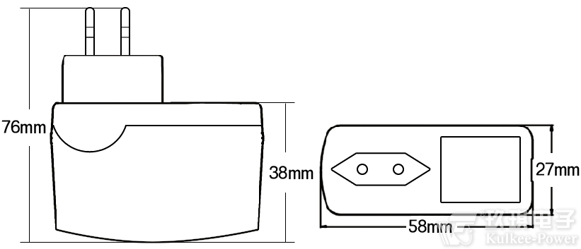 美規(guī)/日規(guī)/國標:58*27*62mm;歐規(guī)/韓規(guī):58*27*76mm;