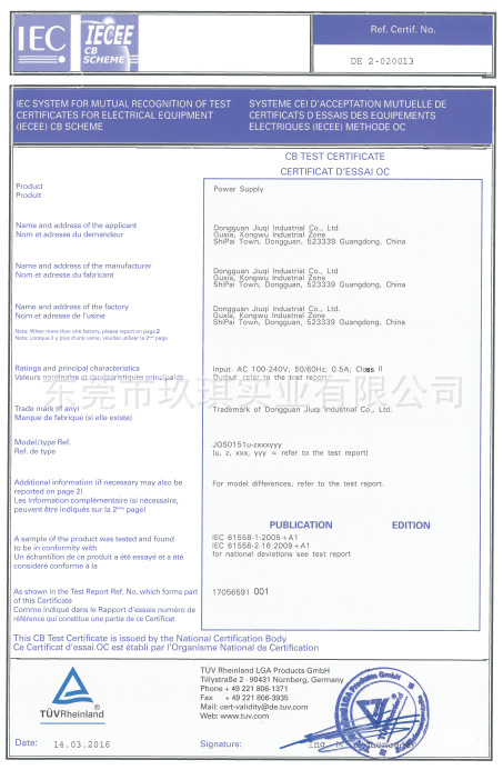 網(wǎng)站首頁 » 產(chǎn)品展示 » 產(chǎn)品認(rèn)證 » 15W證書 » CB安規(guī)證書-15W系列電源適配器
