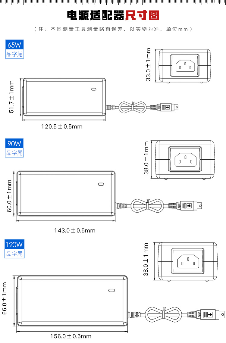 OEM訂做,每一個品字尾電源適配器是有AC線和DC線的。可根據客戶需求定做,提供OEM加工。